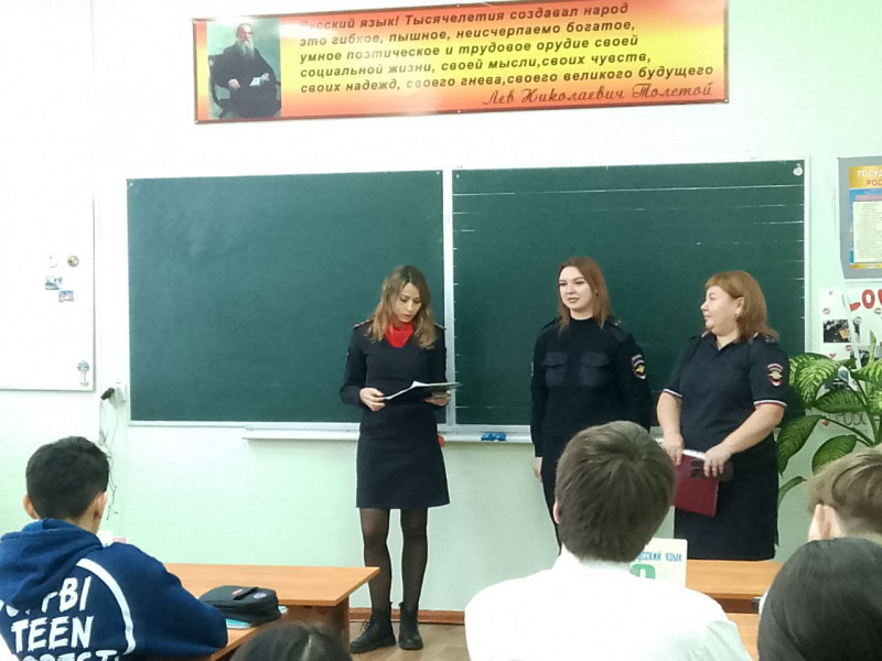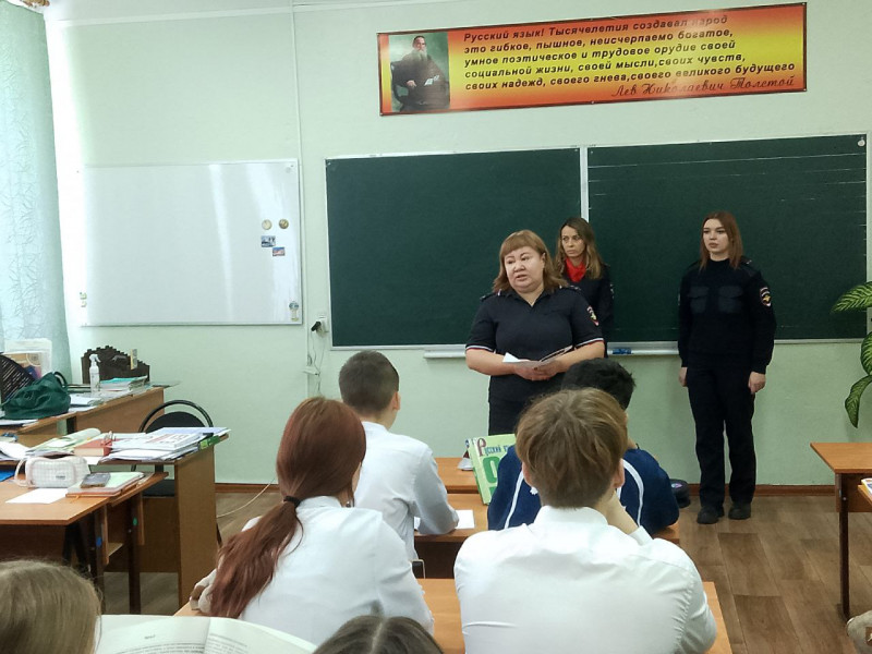 Представители отдела кадров МО МВД России «Ярцевский» ознакомили учащихся с условиями и правилами поступления в образовательные учреждения системы МВД России. Инспектор по профилактике безнадзорности и правонарушений среди несовершеннолетних (ПДН) подчеркнул важность соблюдения законодательства, рассказал о возможных административных и уголовных последствиях правонарушений и преступлений, а также дал рекомендации по безопасному поведению в сети Интернет.